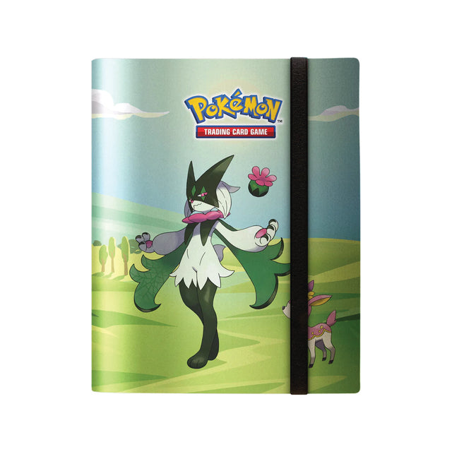 Ultra PRO 9-Pocket PRO-Binders album to hold 360 Pokémon cards featuring Skiddo, Hoppip, Deerling (Spring Form), and Meowscarada and includes an elastic band closure.