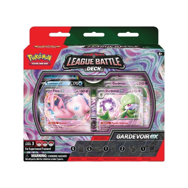 Sastavite svoj deck s Kirliom, ojačajte svoje napade s Gardevoir ex i ostvarite ogromne nokaute s Drifloonom! Ova snažna kombinacija psihičkih Pokémon-a predstavlja moćan set spreman za Ligu, idealan za poboljšanje vaše natjecateljske igre. Gardevoir ex League Battle Deck s mnoštvom karata – uključujući vrhunske folijske karte, tražene moćne karte i dobro izbalansirani skup Pokémon i Trainer karata, koji uključuje Lumineon V, Mew ex i Iono – spaja sve elemente potrebne da vas podrži u sljedećoj utakmici protiv prijatelja i susjeda, bilo osobno ili online!