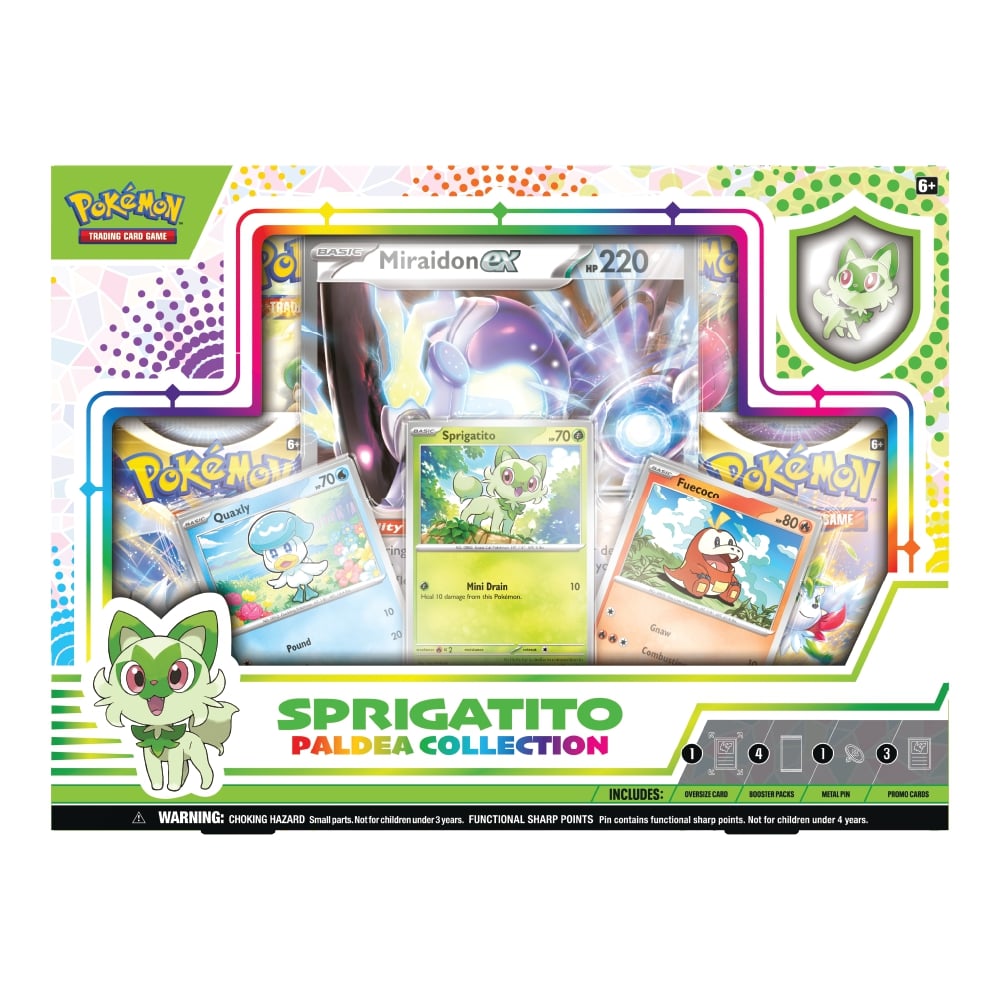 Preparati per una nuova avventura nella regione Paldea con il gioco Pokémon Trading Card! Come in ogni regione, anche qui puoi scegliere il tuo amico iniziale. I Pokémon Sprigatito, Fuecoco e Quaxly si uniscono alla tua collezione come carte promo in laminato, mentre il pin ti permette di appuntare i tuoi Pokémon scelti sul tessuto e mostrarli a tutti. Scegli il tuo Pokémon iniziale e parti per l'avventura!